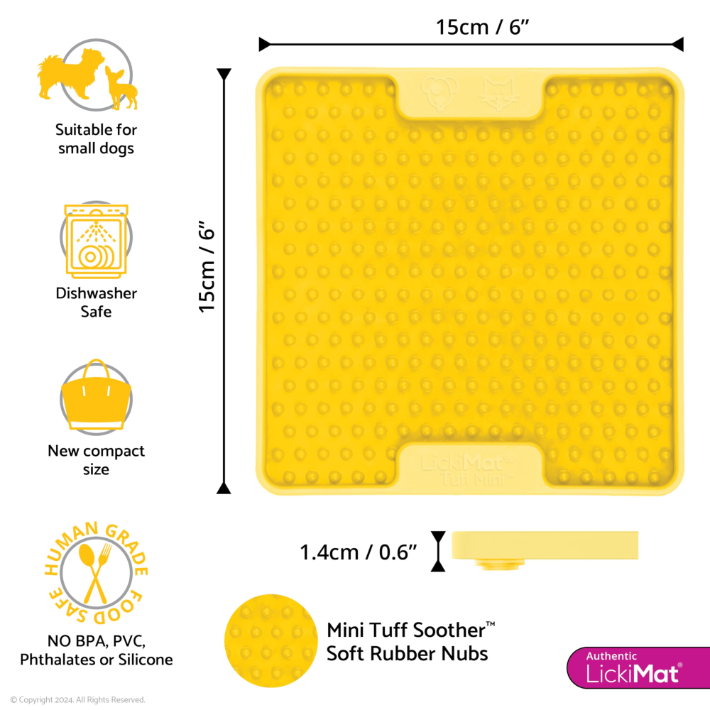 Entretenga, distraiga Y reduzca la ansiedad y el aburrimiento con Licki Mat® Mini Soother™. Los LickiMats están desarrollados por veterinarios en Australia y los entrenadores y veterinarios los recomiendan como alimentadores lentos y saludables que promueven un aliento fresco, una mejor salud bucal y digestión.